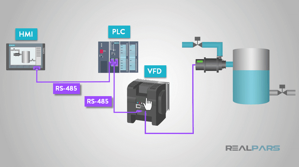 所有這些都可以讓您加快控制水泵速度的VFD。RS485通信解決了問題。